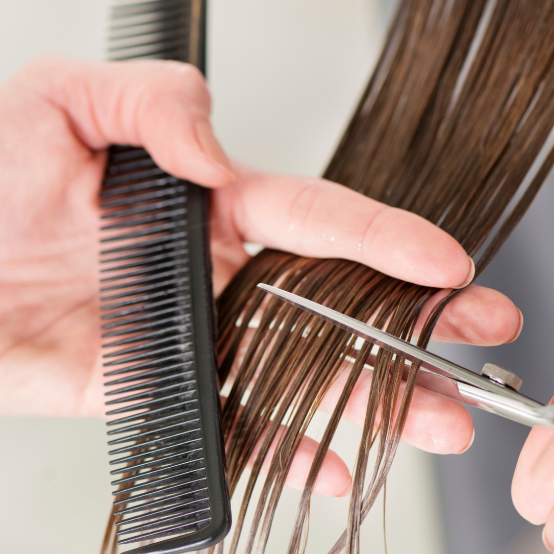 A precision cut on dry clean hair for a quick refresh, focusing on shape and texture, no restyles.